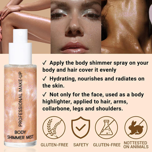 Face Liquid Highlighter Shimmer Body Spray for Hair and Skin, Luminizer Glow Spray for Face, Moisturizing Bronze Shimmer Illuminator (Y, Standard)