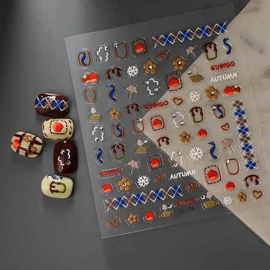 Fall Flowers Nail Art Stickers, Maillard Leopard Lily Nail Decals 3D Embossed with Sweet Cool Spicy Girl Style Design 8Pcs Nail Art Supplies for Women Nail Decoration