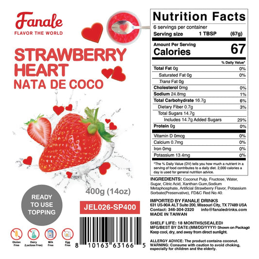 Fanale Coconut Jelly Topping nata de coco for Bubble Tea | Strawberry Heart Jelly Topping for Boba Tea, Smoothies, Slushes, Desserts 400g(Pack of 1)