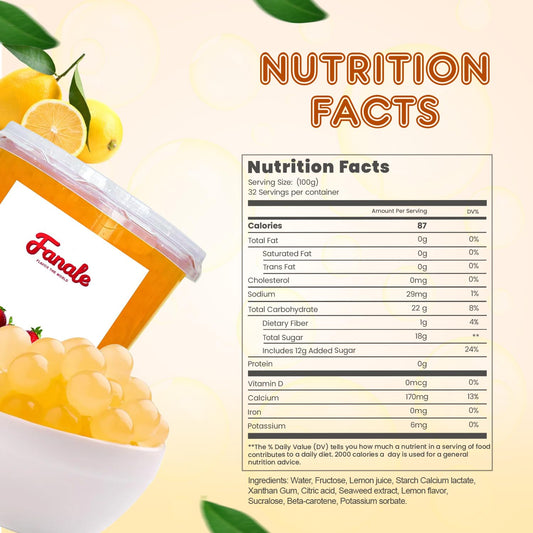 Fanale Lemon Popping Boba Pearls, Vegan, Non GMO, Gluten Free, Fat Free, Perfect for Bubble Tea, Smoothies, Ice Cream, Desserts, and Beverages.