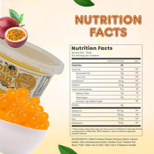Fanale Passion Fruit Popping Boba Pearls, Vegan, Non GMO, Gluten Free, Fat Free, Perfect for Bubble Tea, Smoothies, Ice Cream, Desserts, and Beverages.