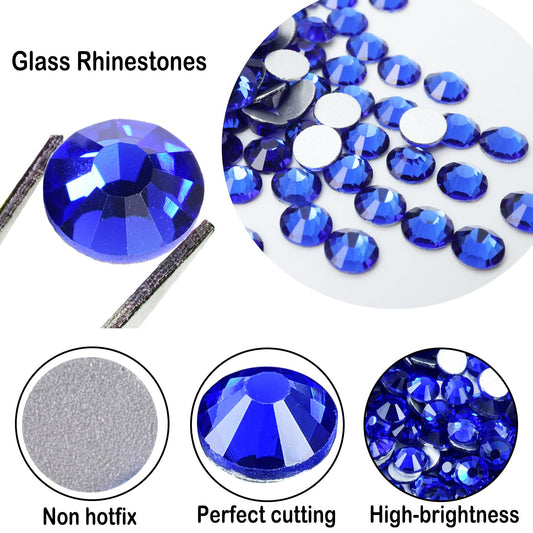 Flatback Glass Rhinestones,Bedazzler Gems 1440pcs Non Hotfix Crystal Rhinestones for Nail Charms Crafts Clothes Tumblers,Sapphire,SS16