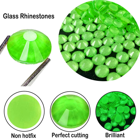 Flatback Glass Rhinestones,Bedazzler Gems 1440pcs Non Hotfix Crystal Rhinestones for Nail Charms Crafts Clothes Tumblers,Light Green Neon,SS10