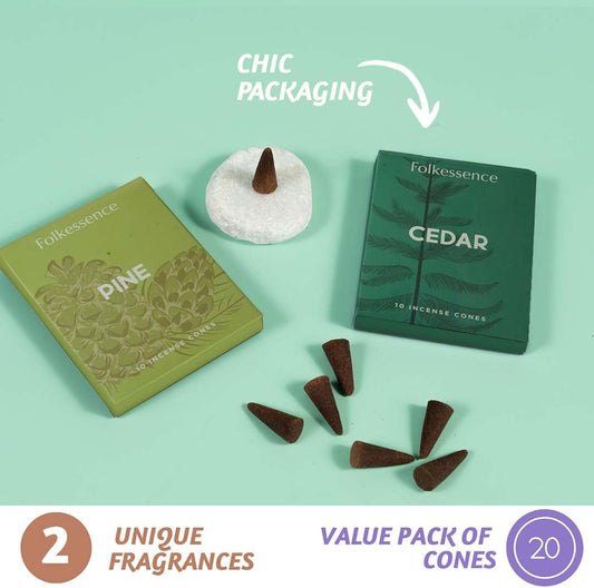 Folkulture Incense Cones for Waterfall | 20 Pc Incense Cone Scented | 2 Fragrance Cone-Insenses - Pine & Cedar | Natural, Non Toxic | Pine & Cedar Inscents-Cones | Relaxing, Meditation, Spiritual