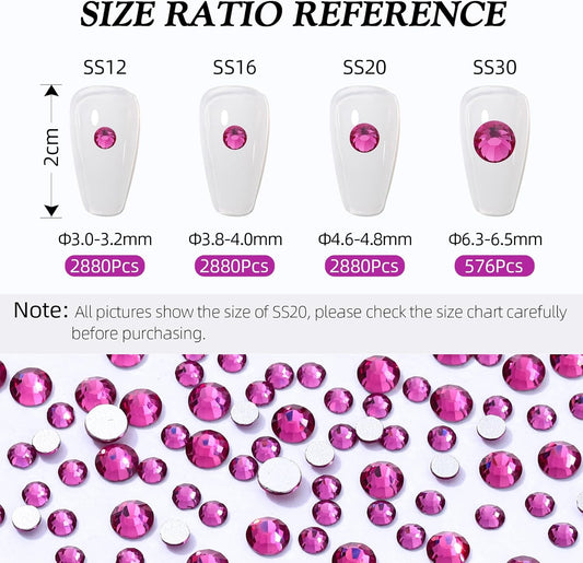 Fuchsia Flatback Rhinestones, Glass Rhinestones for Nail Art and Craft, Glue Fix, Loose Crystal Gemstones(Fuchsia, SS12, 2880pcs, 2.9-3.0mm)