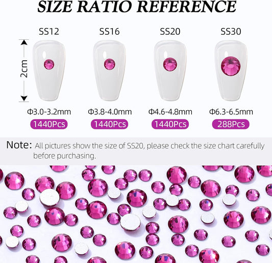 Fuchsia Flatback Rhinestones, Glass Rhinestones for Nail Art and Craft, Glue Fix, Loose Crystal Gemstones(Fuchsia, SS20, 2880pcs, 4.6-4.8mm)