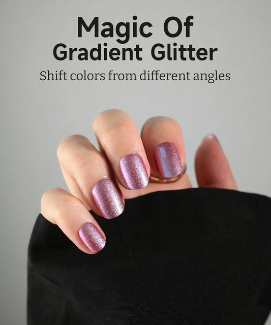 Glitter Nail Polish Strips, 32 Pcs Salon Quality Gel Nail Stickers, Long Lasting Wraps Easy to Use & Remove (Glitter Rose Pink)
