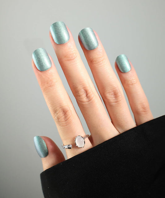 Glitter Nail Polish Strips, 32 Pcs Salon Quality Gel Nail Stickers, Long Lasting Wraps Easy to Use & Remove (Glitter Aquamarine)