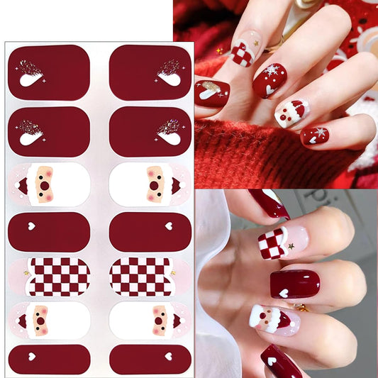 Glitter Christmas Gel Nail Polish Stickers Santa Claus Elk Nail Design Winter Gel Nail Stickers Christmas Trees Snowflake Full Wrap Gel Nail Strips French Christmas Stickers for Women Nail Supplies