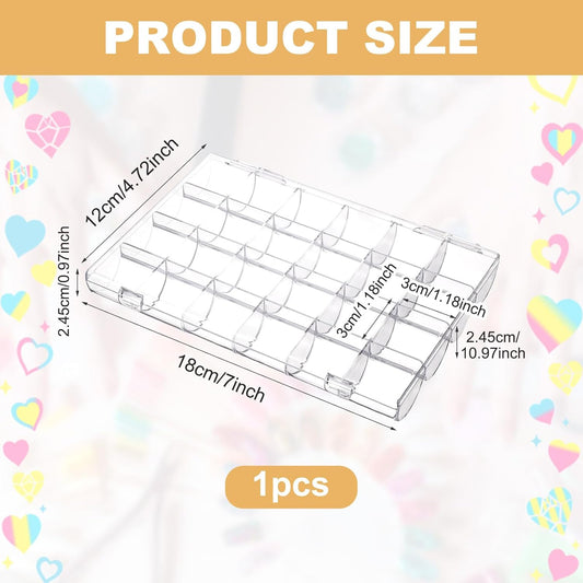 24 Grids Plastic Bead Organizer Box, Acrylic Jewelry Box Organizer Container Nail Rhinestone Display Case for Craft Beads Jewelry Small Parts Sewing Items (Clear)