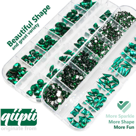 24 Styles Emerald Green Nail Rhinestones Multi Shapes Flatback Crystals Gems Round Beads K9 Glass Stones Diamonds Jewels Nail Art Charms Supplies for Nails Face Eyes Makeup Crafts Clothes Shoes