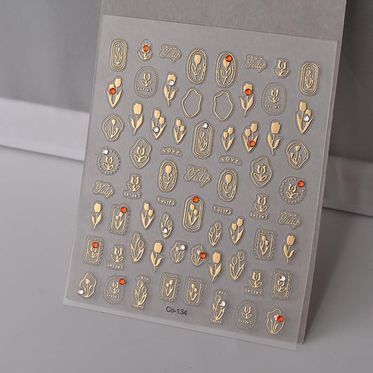Gold Nail Stickers Flower Nail Decals for Nails Art Tulip Nail Art Stickers with Design Heart Nails Art Decals Self Adhesive Sticker for Women Girls Kid Manicure Charms Supply Accessories