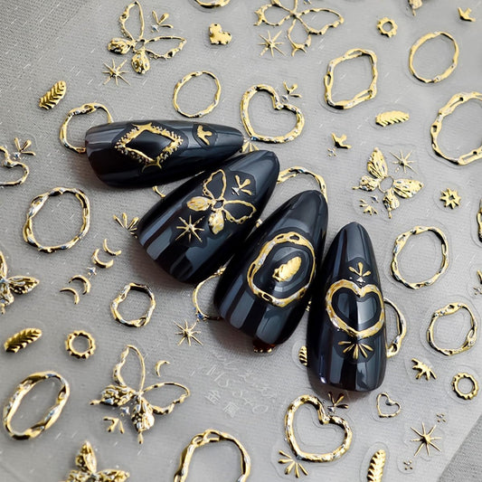Gold Nail Art Stickers Butterfly Heart Nail Decals with Golden Design 5D Embossed Self Adhesive Nails Supply for Women Girls Kid Manicure DIY Decoration Accessories