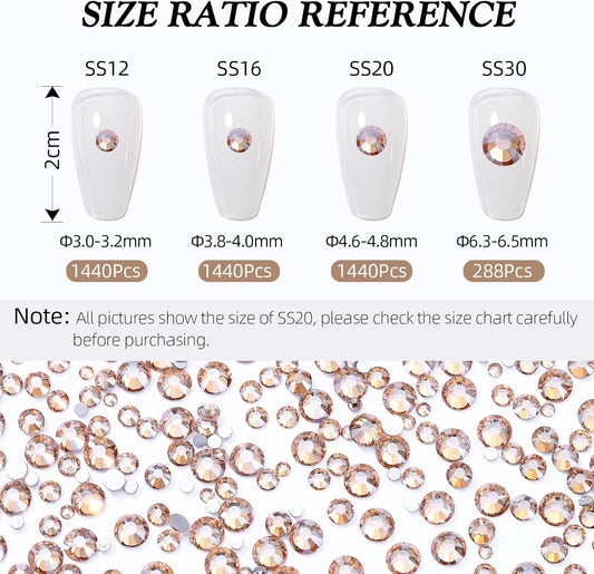 Gold Shadow Flatback Rhinestones, Glass Rhinestones for Nail Art and Craft, Glue Fix, Loose Crystal Gemstones(Gold Shadow, SS12, 1440pcs, 2.9-3.0mm)