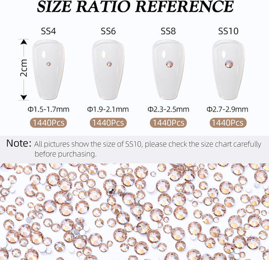 Gold Shadow Flatback Rhinestones, Glass Rhinestones for Nail Art and Craft, Glue Fix, Loose Crystal Gemstones(Gold Shadow, SS10, 1440pcs, 2.7-2.8mm)
