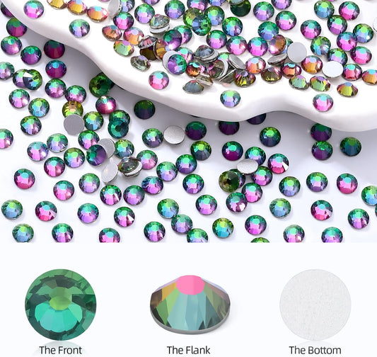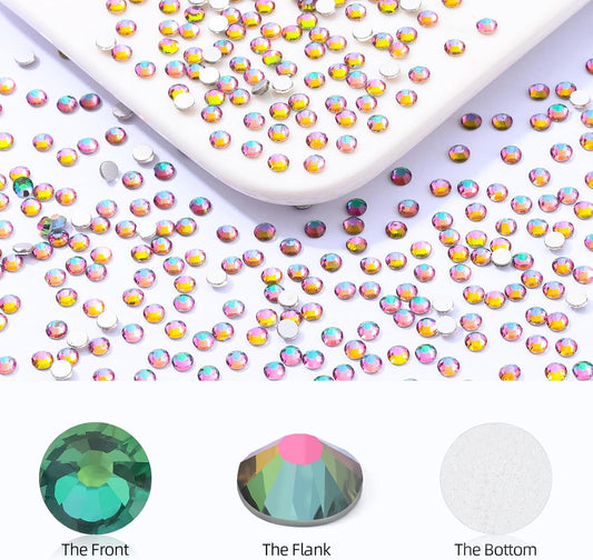 Green Volcano Flatback Rhinestones, Glass Rhinestones for Nail Art and Craft, Glue Fix, Loose Crystal Gemstones(Green Volcano, SS6, 2880pcs, 1.9-2.0mm)