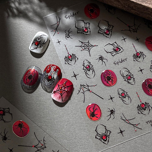 Halloween Nail Art Stickers 5D Embossed Gothic Spider Nail Stickers, Self-Adhesive Durable Nail Art Decals for Women Girls, Nail Wraps Decoration Manicure for DIY Acrylic Nail Accessories