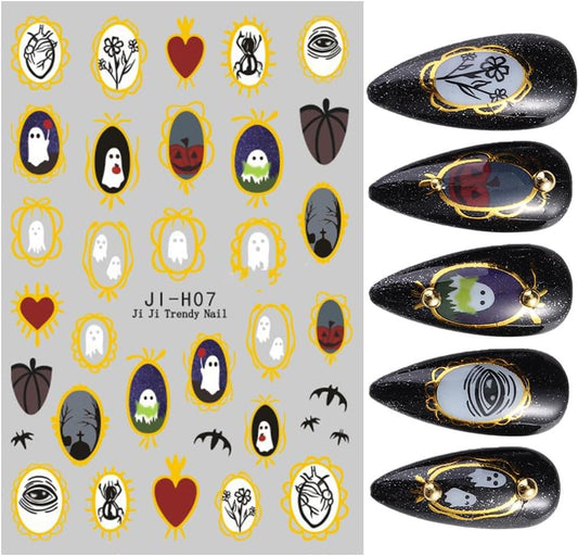 Halloween Nail Stickers for Nail Art Cute Ghost Pumpkin Bat Scary Anime 3D Self-Adhesive Nail Decals Nail Art Supplies Nails Design Manicure Stickers for Nails Decoration 6Sheets