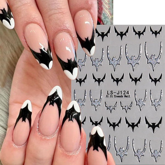 Halloween Nail Stickers Ghost Nail Art Decals with Black White Design 5D Self Adhesive Bat Nail Art Stickers Nails Charms Supply foe Women Girls Kid Horror Manicure Decoration