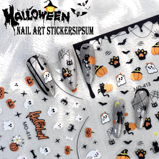 Halloween Nail Stickers, Spider Web, Pumpkins, Cat, Ghosts Nail Art Design 5D Manicure Decal Self-Adhesive Nail Supplies Accessories for Women