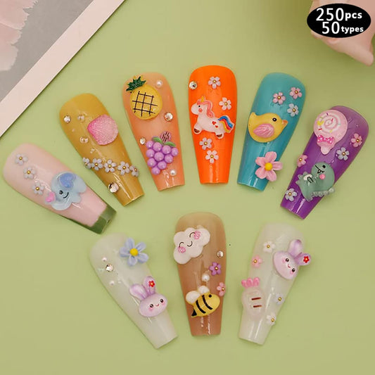 250pc 3D Nail Charms Set - Diverse Shapes & Colors for Acrylic Nails & DIY Crafts (#3)