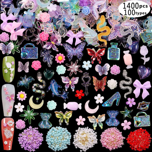 250pc 3D Nail Charms Set - Diverse Shapes & Colors for Acrylic Nails & DIY Crafts (#2)