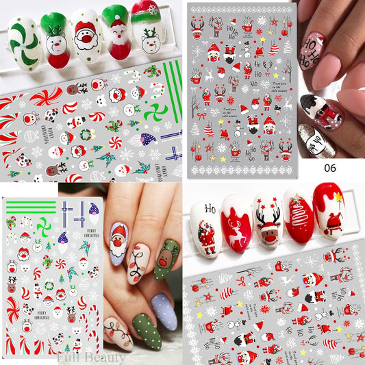 HNUIX Nail Stickers - Christmas 3D, Self Adhesive Nail Decals, Multi Colour Pattern, 10 Sheets, for Nail Art