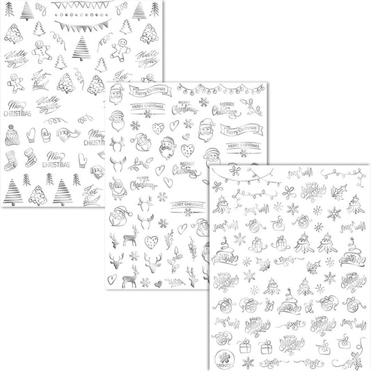HNUIX Nail Stickers - 3D Christmas, Self Adhesive Nail Decals, Multi Pattern, Silver, 9 Sheets, for Nail Art