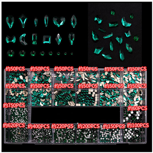 HNUIX Nail Rhinestones - 3D Multi Shape Size, Emerald Green Nail Gems, Flat Back, with Kit, for Nail Art, DIY Decorations