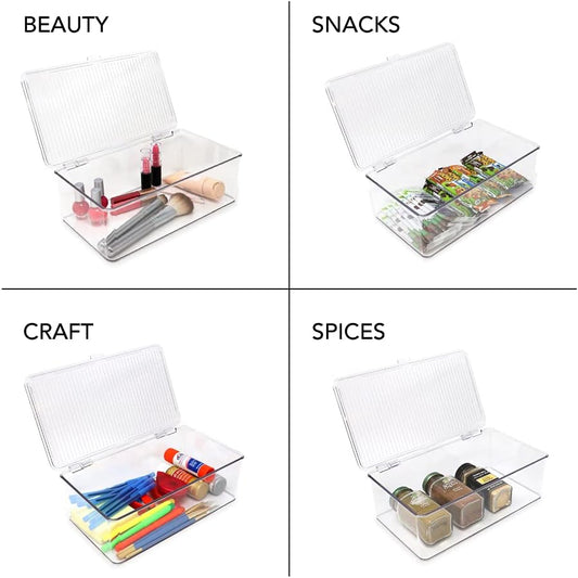 Isaac Jacobs Medium Stackable Organizer Bin (10.75”x6.5”x3.7”) w/ Hinged Lid, Clear Storage Box, Home, Office, School, Fridge, Bathroom, Kitchen, Pantry Container, BPA-Free, Food Safe (Medium, Clear)