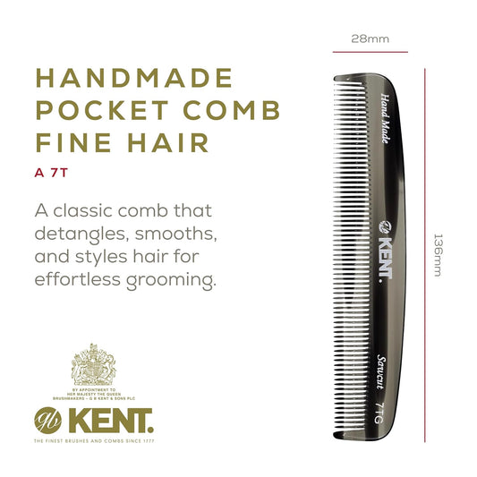 Kent 7T G All Fine Tooth Pocket Comb-Handmade Hair Comb for Grooming and Styling-Travel Comb for Hair Care,Mustache and Beard Care, Use Dry or with Balms, Saw Cut and Hand Polished for Wet or Dry Hair
