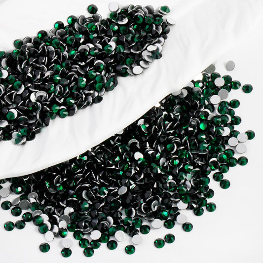 3000PCS SS10 Flatback Rhinestones | 12-Facet Diamond-Cut Glass Gems for Nail Art, Clothing, DIY Crafts |Glue-On Decoration Stones with Silver Backing(Emerald)