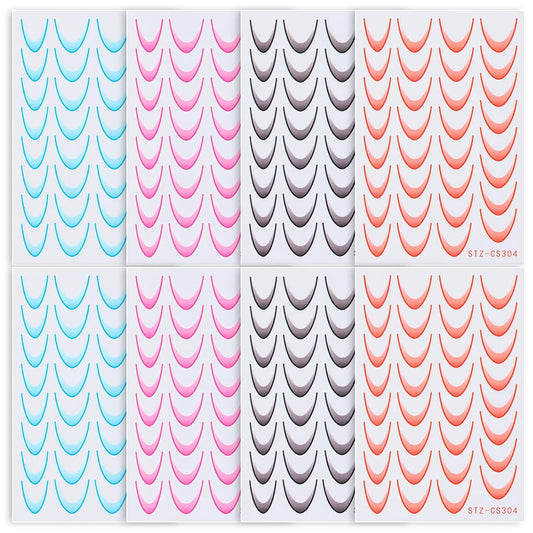 380 Pcs French Tips Nail Stickers, 8 Sheets Self-Adhesive Gradient Orange Black Rose Blue French Tips for Women Girls, 2025 Spring French Tip Nail Stickers Trendy Designs