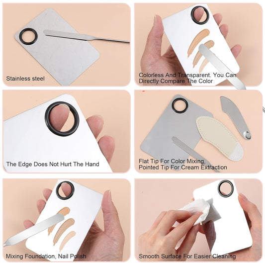 3PCS Makeup Mixing Palette Tool with Make up Spatula, Professional Stainless Steel Makeup Palette Tray Foundation Spatula for Women Girl Facial Cosmetic Nail Art Pigment Blending Tool