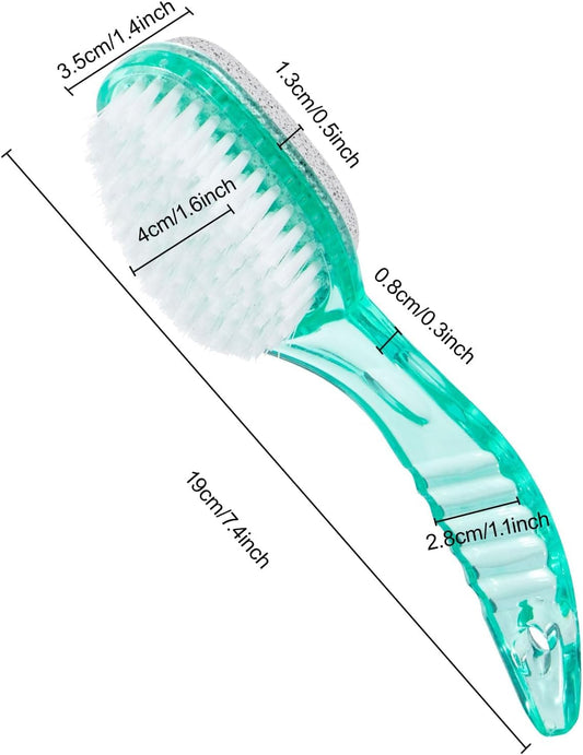 4 Pcs Foot Brush for Shower with Handle 2 in 1,Ooloveminso Large Foot Pumice Stone Brush Scrubber Foot File Calluses Remove Suitable for Horniness Foot Spa,Foot Care Smooth Skin (Green&Transparent)