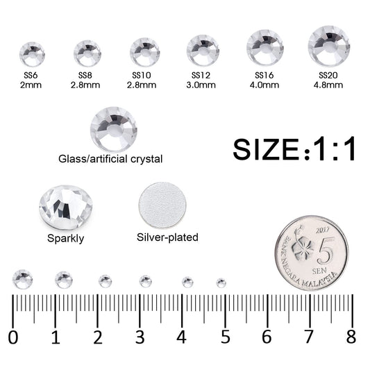 4080Pcs Silver Clear Nail Rhinestones Crystal White Stones More Quantity 1.5-4mm Flatback Round Beads K9 Glass Gems Nail Art Diamonds Jewels Charms for Nails Face Eyes Makeup Shoes DIY Crafts