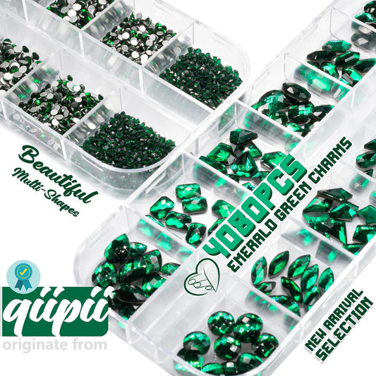 4080Pcs Emerald Green Nail Rhinestones K9 Glass Crystal Flat Back Rhinestones Nail Charms Stones Multi Shapes Big Gems Round Beads Nail Art Diamonds jewels for Nails Face Eyes Makeup Crafts DIY