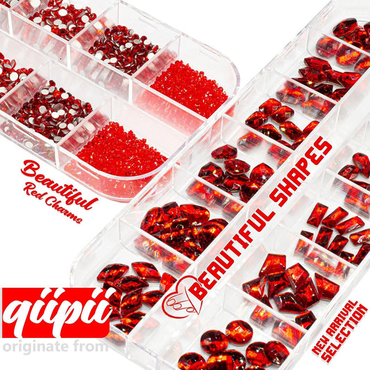 4080Pcs Red Nail Rhinestones Multi Shapes Ruby Rhinestones for Nails 1.5-4mm Crystal Gems Siam Red Round Flatback Beads Glass Stones Diamonds jewels Charms for Nails Face Eyes Makeup DIY Crafts