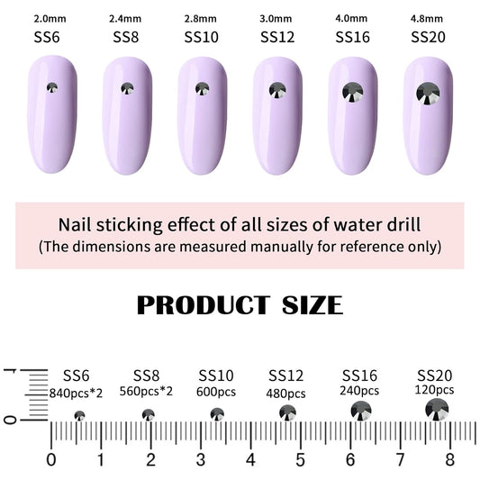 4240Pcs Black Diamond Flatback Rhinestones 6 Sizes Crystal Diamonds for Nail Art Crafts Clothes Shoes with Tweezers and Picking Pen