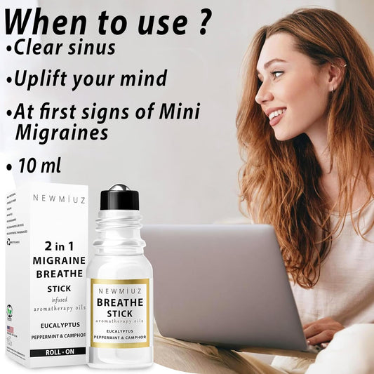 Breathe Easy Roll on Stick Peppermint Eucalyptus Essential Oil Blend Stress Sinus Natural Relief Gifts for Women Men Perfect Stocking Stuffers