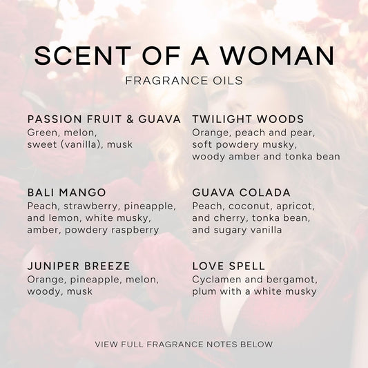 Eternal Essence Oils Scent of a Woman Set of 6 Premium Fragrance Oils - Includes Guava Colada, Twilight Woods, Bali Mango, Passion Fruit & Guava, Juniper Breeze, and Love Spell Scented Oils - 10ML