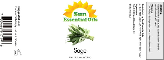Sun Essential Oils – Sage Essential Oil 16 oz for Diffuser, Skin, Aromatherapy Massage, Humidifier, Herbaceous Scent for Candle, Lotion & Soap Making, Room Fragrance