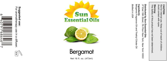 Sun Essential Oils Bergamot Essential Oil 16 oz Bulk for Skin, Hair, Aromatherapy, Soap & Diffuser