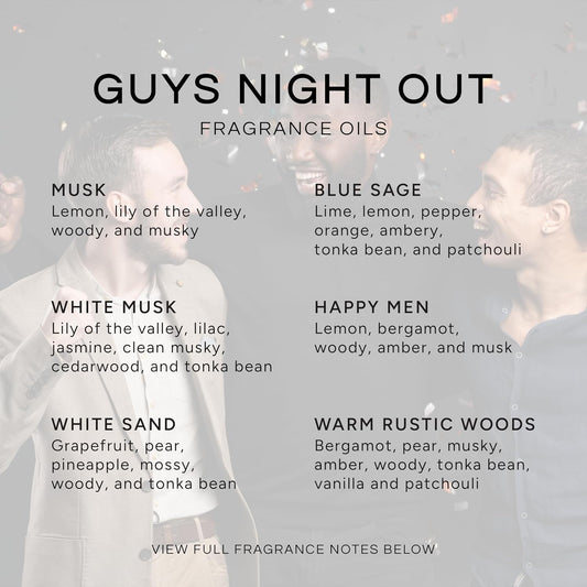 Eternal Essence Oils Guy's Night Out Set of 6 Premium Fragrance Oils - Includes Including Happy Men, Blue Sage, White Sand, Warm Rustic Woods, Musk, and White Musk Scented Oils - 10ML