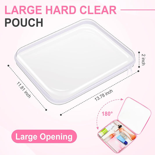 Sanwuta 6 Pcs Clear Hard Zipper Case Pencil Pouches Hard Plastic Zipper Pouches Makeup Bag Transparent Cases for Snacks Plastic Storage Organizer Box for Travel(White,13.78 x 11.81 x 2 Inch)