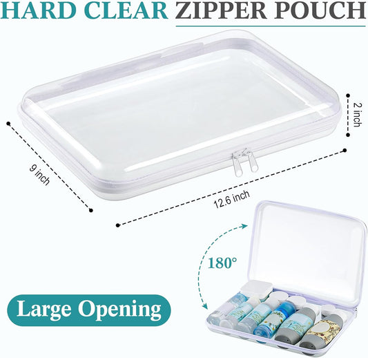 Sanwuta 6 Pcs Clear Hard Zipper Case Pencil Pouches Hard Plastic Zipper Pouches Makeup Bag Transparent Cases for Snacks Plastic Storage Organizer Box for Travel