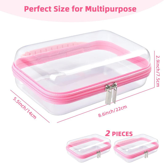 SameTech Zippered Hard Pouch, 2pcs Clear Plastic Storage Box Containers Small Toiletry Bag, Clear Hard Zipper Case for Small Items, Toys, Building Blocks, Puzzles, Cosmetics, Stationery Accessories