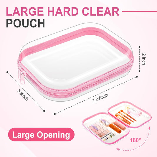 Sanwuta 6 Pcs Clear Hard Zipper Case Pencil Pouches Hard Plastic Zipper Pouches Makeup Bag Transparent Cases for Snacks Plastic Storage Organizer Box for Travel(Pink,7.87 x 5.9 x 2 Inch)