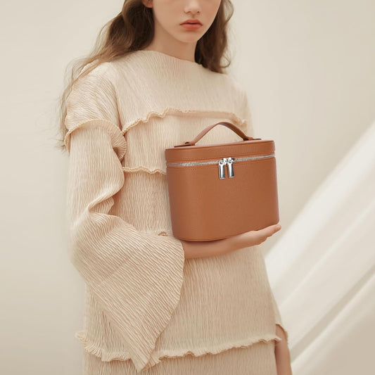 Makeup Bag Vanity Case Cosmetic Bag with Removable Divider Travel Toiletry Bag for Women Portable Make up Box Organizer, Brown
