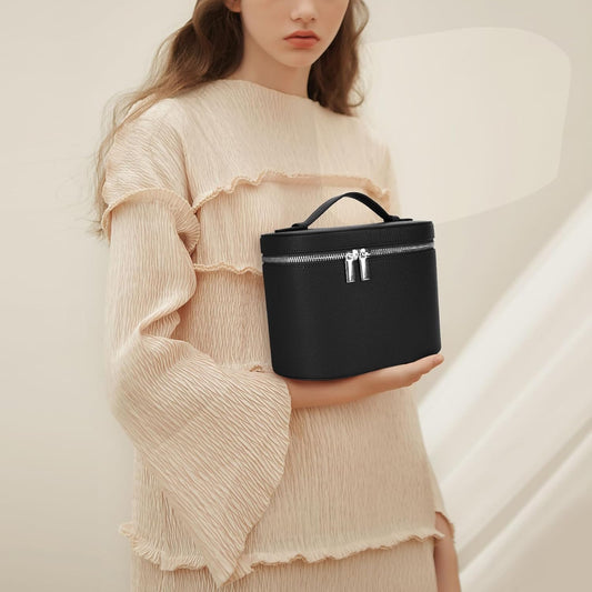 Makeup Bag Vanity Case Cosmetic Bag with Removable Divider Travel Toiletry Bag for Women Portable Make up Box Organizer, Black
